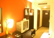 鲜红的抱枕,明艳的床尾垫,闪亮的心情,从踏入房门的那瞬间即刻拥有。多功能酒柜还可放置大量行李,让您的房间整齐划一,衣柜门外侧即为镜子,让您在最短的时间里看到另一种风格的自己。房间里还配有沙发、饮水机、电视机、电脑、保险箱,丰富您住店的时光,并解除您所有的后顾之忧。舒适柔软的大床,让您美梦常伴。