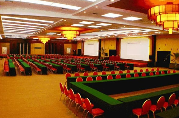 在选择会议酒店时注意不要只询问会场的面积来判断能容耐下多少人,因为有的会场里面会有大型的柱子,占用面积,还有的会场的形状不规则,有很多的角落都不适合摆放桌子,会影响开会的效果。所以现在无柱子的方形的会场是非常受欢迎的,顾客在询问的时候不要问会场的面积,直接问有多少的座位就可以有一个直观的判断。
